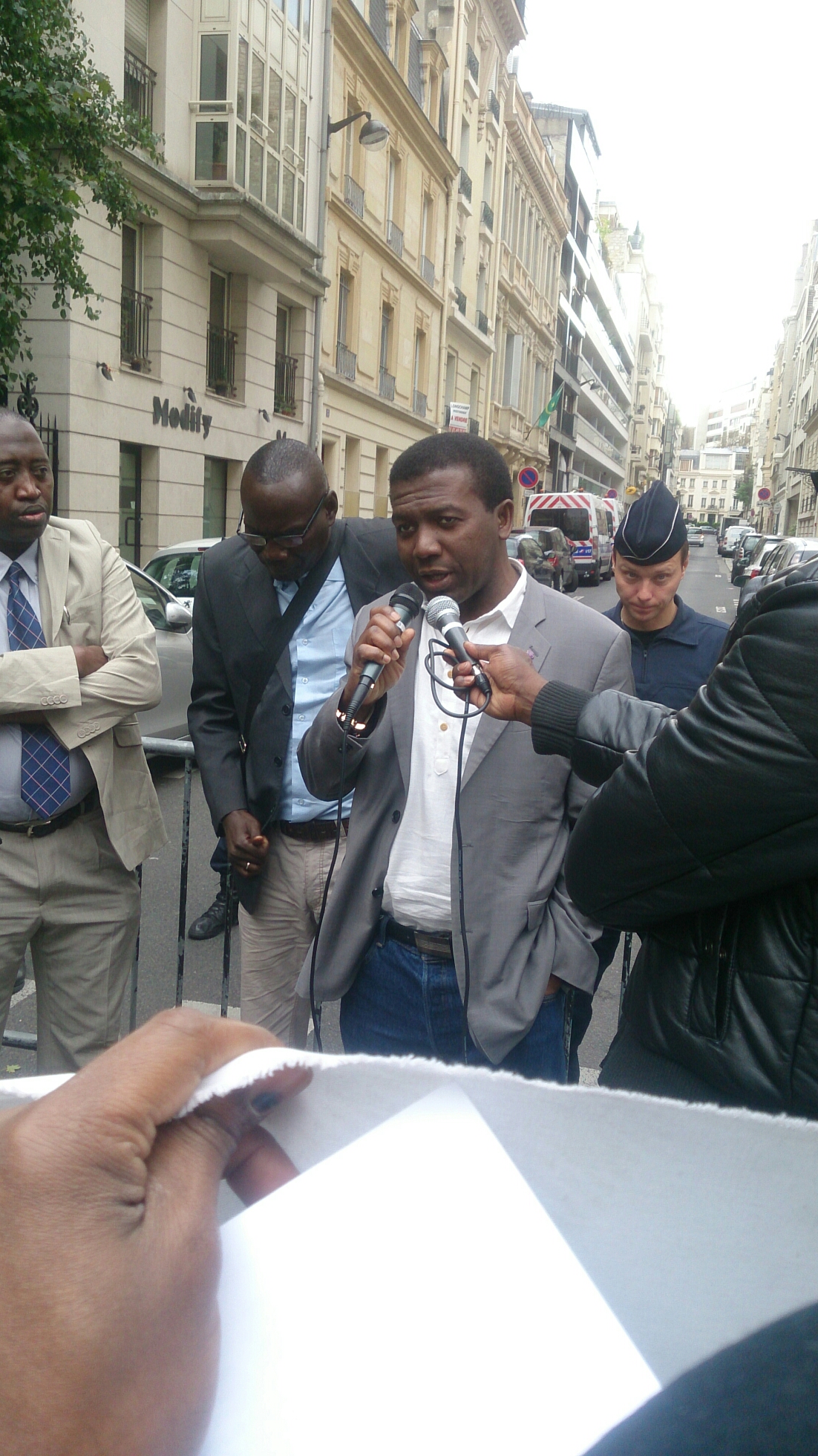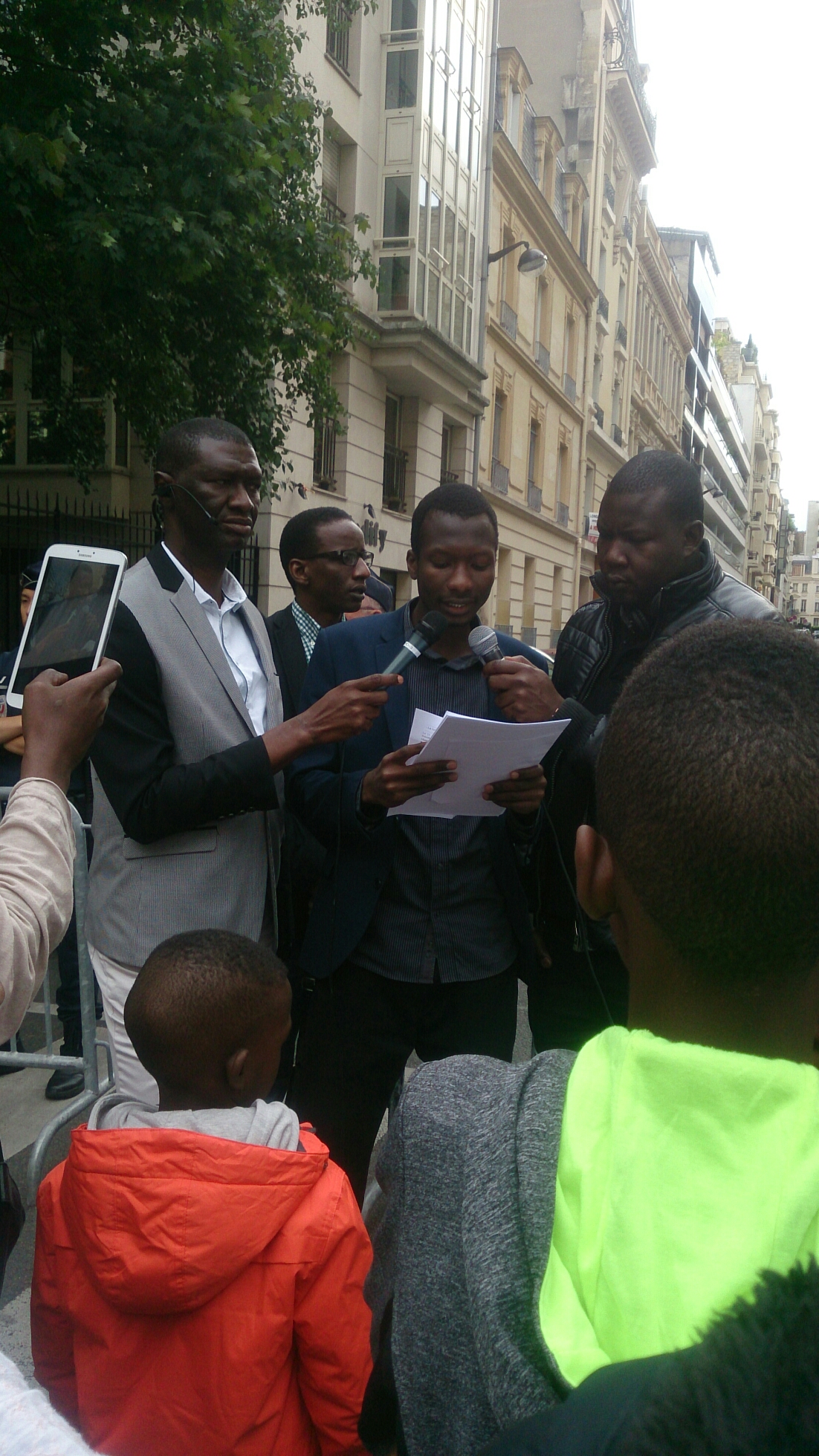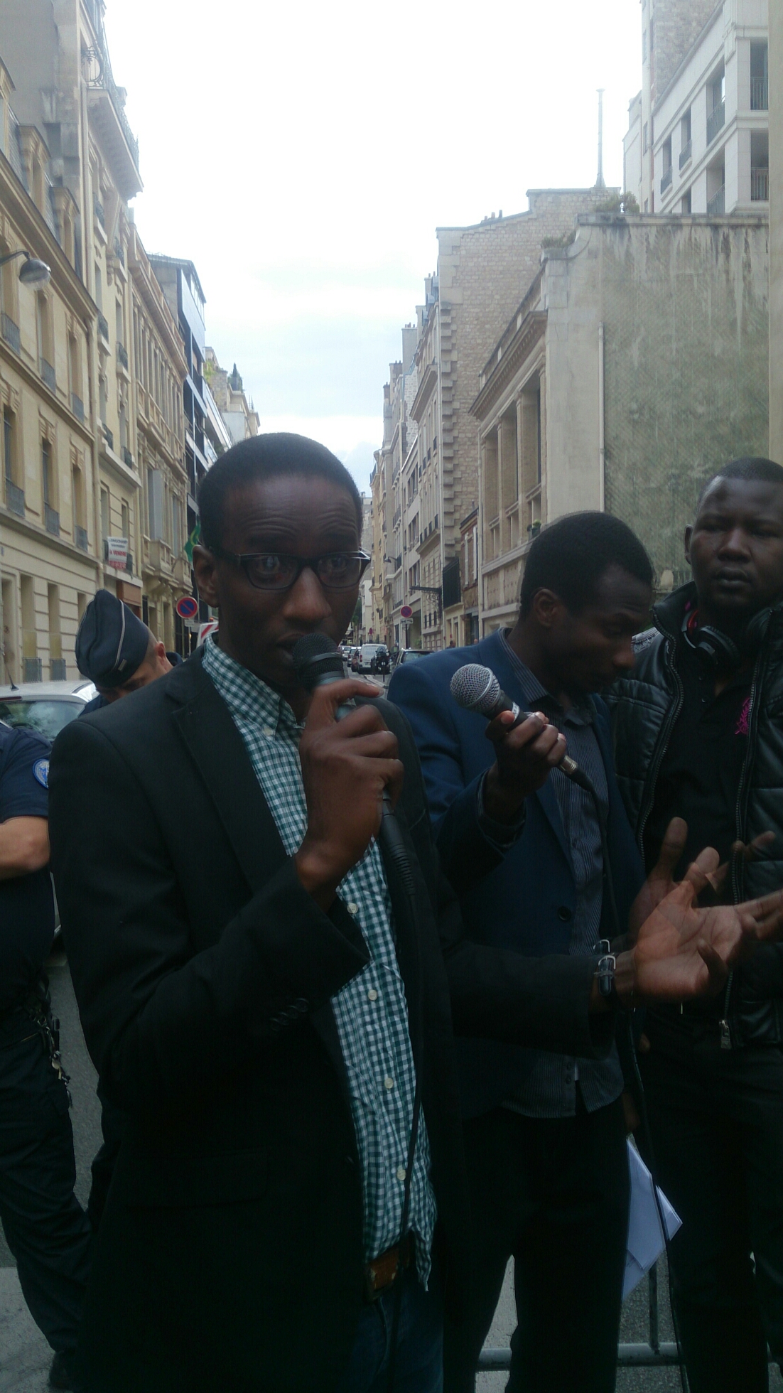 Des slogans demandant la libération des détenus d’opinion et l’application du Droit en Mauritanie d’une manière générale. Il est à noter la présence honorable dans le cortège du vice-président de SOS RACISME, en la personne de Brahim Sorel Keita qui a pris la parole après la lecture de la déclaration par Mr Niang Souleymane, l’un des membres du comité de soutien. Une copie de la déclaration a été déposée dans la boîte courrier de l’ambassade, à la suite des vifs appels scandés par les participants dénonçant toutes les injustices multidimensionnelles qui sévissent en Mauritanie.