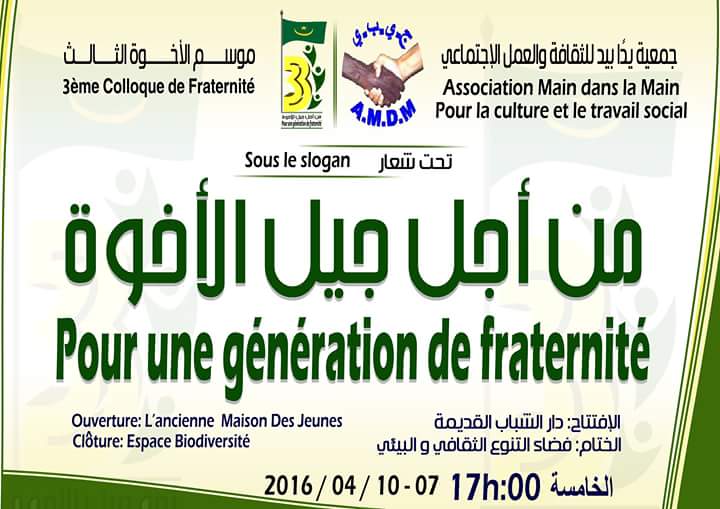Ces derniers jours, peu auront raté les activités multiformes d’une association dénommée « Main Dans la Main » . De Nouakchott où s’est tenue leur rencontre de cette année, nous qui sommes loin du terrain, avons pu suivre le déroulé du programme via les réseaux sociaux notamment par leur page Facebook et les posts de certains chanceux participants. L’affiche de ce colloque, le 3 ème du nom est sans équivoque : LE COLLOQUE DE FRATERNITÉ. Le slogan en gras est « POUR UNE GÉNÉRATION DE FRATERNITÉ ». L’islam admis communément comme la religion de l’ensemble de la population mauritanienne, apparaît en filigrane comme l’élément central qui inspire les motivations intimes des têtes pensantes de l’association. Et rien d’étonnant, car ce pays aux milliers d’ Ulémas, se définit comme une république islamique dont les enseignements islamiques seraient l’inspiration de tout ce qui se fait ou se défait à toutes les échelles. Sauf que connaissant cette Mauritanie sous l’angle politique, économique, sociale et culturelle, les appartenances tribales, ethniques, communautaires et statutaires par castes sont les vraies références exclusivistes au détriment des valeurs fraternelles promues par l’Islam. Habituellement, ce dernier est mis à toutes les sauces réthoriques tenues par certains milieux politiques, intellectuels et religieux croyant que le Dire fait magiquement le Vivre. C’est ainsi que certains mots-notions bien connus dans le langage du politico-religieusement correct, comme la Concorde, la Cohésion, l’Entente ou la Cohabitation, qui sont automatiquement eux aussi suivis de deux qualificatifs spéciaux, Social et Historique. De ce fait, toutes les revendications légitimes réclamant fermement plus de Justice sociale et politique en dehors des schémas habituels admis par le tribalo-féodal, tombent sous l’anathème de voix autorisées. Le paradoxe est saisissant entre le Réel vécu et les discours policés et bienveillants tenus au nom de la religion commune.