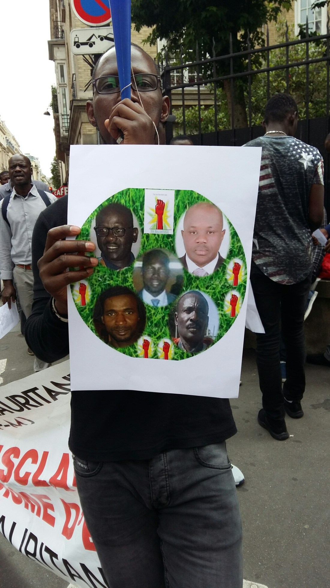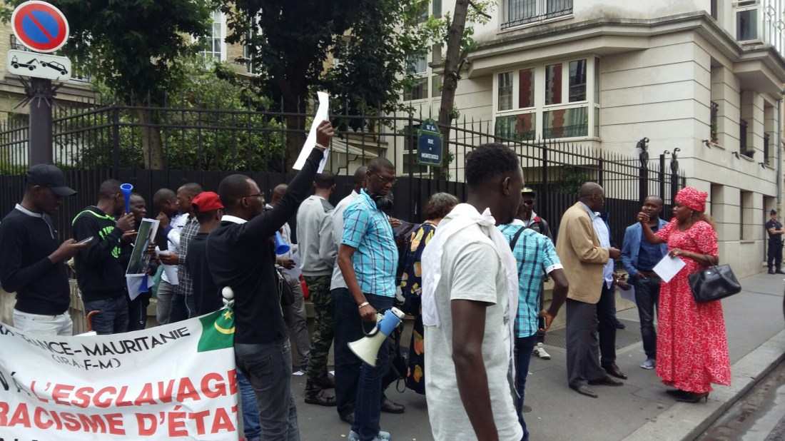 Ce jour d’été dans le chic quartier du 16 ème arrondissement de Paris, certains engagés pour le respect des droits humains en Mauritanie se sont réunis devant la représentation de la Mauritanie en France. Ce 3 août 2016, s’ouvre à Nouakchott le procès des plusieurs piliers du mouvement abolitionniste et anti-esclavagiste IRA-MAURITANIE. Le but du sit-in organisé par IRA-France auquel ont pris part plusieurs militants engagés, était d’alerter les autorités françaises et toutes les organisations sensibles au respect des droits humains, sur les arrestations arbitraires et le procès manipulé en préparation. En plus des éléments d’IRA-France en verve contre ces injustices , il faut noter la présence de certains cadors de la diaspora mauritanienne France, en la personne du grand pèlerin de la bonne cause et l’historique Ibnou Diagana de l’OCVIDH, de Madame Mariem Kane, de Mr Kaw Touré et MrHamadi Soh des FPC ex-Flam, de l’infatigable Diabé Ndiaye dit Thomas Mag et d’autres irréductibles. Des slogans habituels ont été brandis contre le régime répressif qui sévit dans le pays. Les kidnappings qui ont touché les leaders abolitionnistes d’IRA ( Initiative pour la Résurgence Abolitionniste ) à partir du 29 juin dernier, ont été dénoncés avec vigueur. Une déclaration a été éditée et distribuée aux passants, et un exemplaire sera déposé au courrier de l’ambassade.