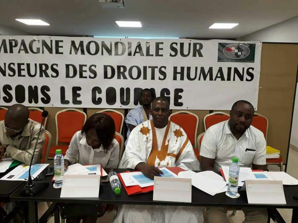 Etait aussi invite à ce colloque Mr Biram Dah Abeid, président de l’Initiative pour la Résurgence du mouvement Abolitionniste en Mauritanie (IRA – Mauritanie). Au cours de sa prise de parole, le lauréat du prix des Nations-Unies pour les droits Humains 2013, a rendu compte à ses hôtes la situation de plus en plus détériorée de l’environnement des droits de l’homme et de l’Etat de droit en Mauritanie. Biram Dah Abeid a expliqué que la Mauritanie est devenue une grande prison pour tous les mauritaniens; il a mis en relief les restrictions graves et grandissantes aux libertés de paroles, de manifester, de s’associer et de l’appareil judiciaire transformé par le régime en instrument pour museler, bâillonner, faire taire ou mettre au secret les opposants politiques, défenseurs des droits humains, journalistes ou syndicalistes. Le président d’IRA – Mauritanie a vivement félicité les organisations de la société civile sénégalaises pour leur soutien constant et indéfectible à IRA – Mauritanie et son combat légitime contre l’arbitraire, la gabegie, le racisme et l’esclavage. D’autre part, Biram Dah Abeid a recommandé a ses collègues sénégalais de s’investir davantage dans le cas de la Mauritanie ou la répression devient de plus en plus large et récurrente depuis que le chef de l’Etat Mauritanien a entamé par la violence, le déni du droit et l’instrumentalisation de la justice, un tripatouillage de la constitution et un processus de troisième mandat illégal.
