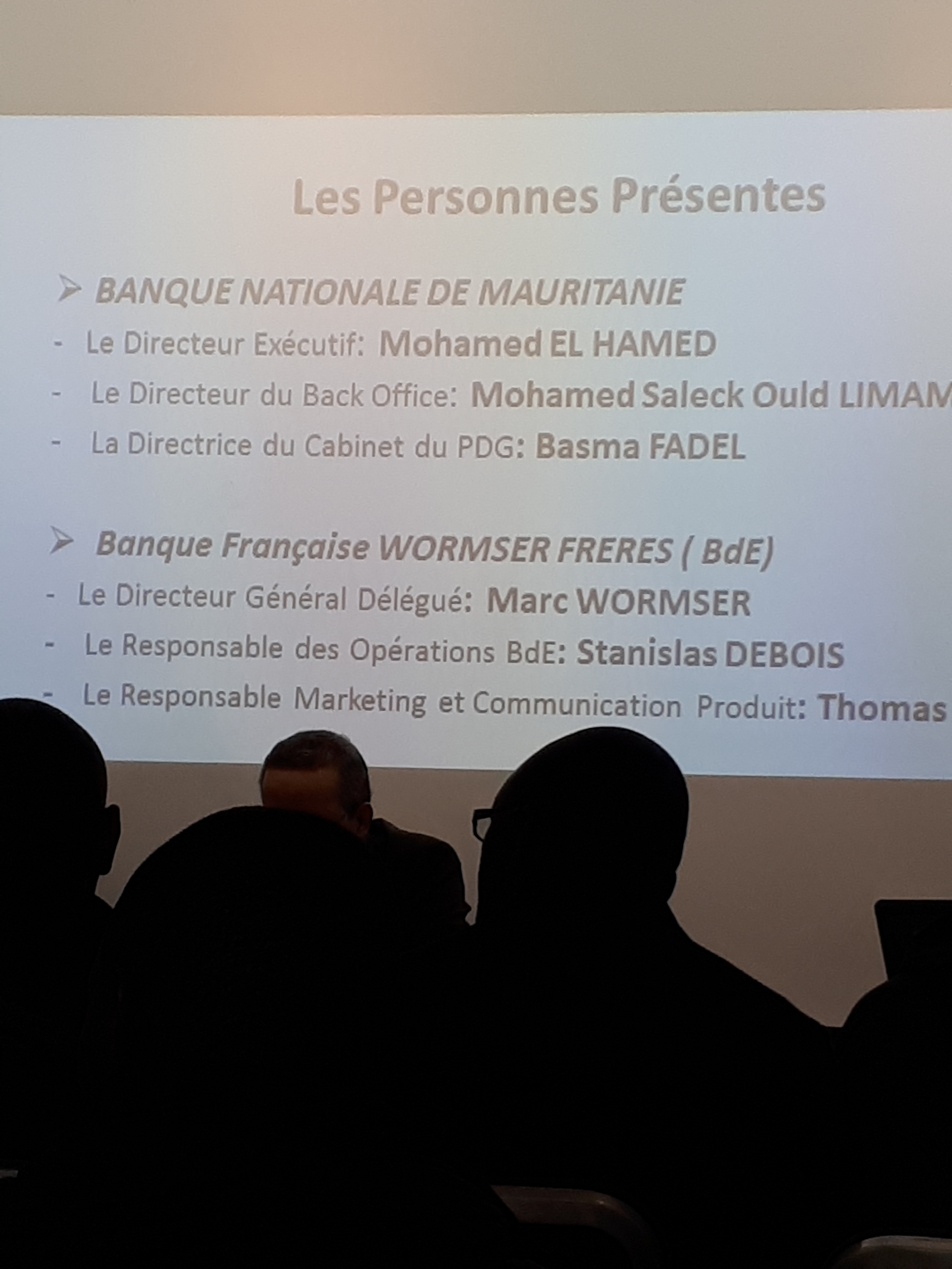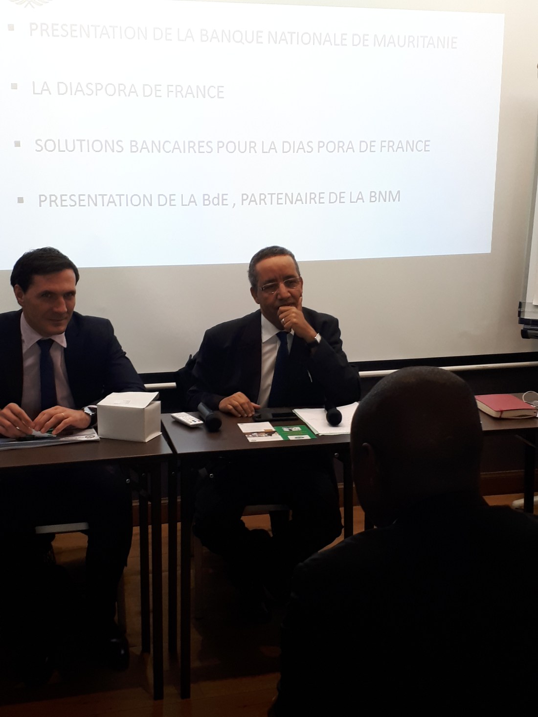 Aujourd’hui 5 décembre 2017, des responsables de la BNM (Banque Nationale de Mauritanie) et leurs partenaires français de la société de transfert d’argent BdE, ont rencontré une partie de la diaspora mauritanienne en France. L’objectif de cette rencontre instructive et conviviale pour l’assistance, est une présentation détaillée des services bancaires ouverts par la BNM à la disposition de sa clientèle ou potentielle clientèle expatriée en France. Ainsi les échanges ont porté principalement sur les différents types de compte, les produits proposés et surtout le partenariat entre la Banque et son relais associé français (BdE) pour le transfert de fonds qui intéresse particulièrement la diaspora. Ce service proposé ressemble plus ou moins à ce qui avait été mis en place par la BMCI et la BOA (Bank of Africa) il y a quelques années. Pour rappel, ce service qui permettait de verser de l’argent dans son compte BMCI via un compte BOA en France a été arrêté depuis quelques mois. Aujourd’hui du côté de la BNM , un service similaire est la proposition phare en partenariat avec son relais partenaire de transfert. La société BdE en France propose des tarifs très compétitifs sur le marché très prisé de transfert d’argent Diaspora vers pays d’origine. Il a été expliqué que la société BdE ne propose pas d’ouverture de compte bancaire proprement dite mais assure des transferts d’argent pour les clients de ses partenaires bancaires à travers le monde. Les responsables de la BNM ont été très soucieux et attenttifs aux différentes observations faites par l’assistance. Ils ont exprimé un intérêt particulier et pressant à vouloir répondre urgemment par des possibilités pratiques et innovantes aux demandes de la diaspora en services bancaires et affiliés. Par ailleurs, on dirait qu’il faut plus de communication et d’information à l’endroit de la diaspora, afin de toucher large le vivier potentiel d’une clientèle certaine.
