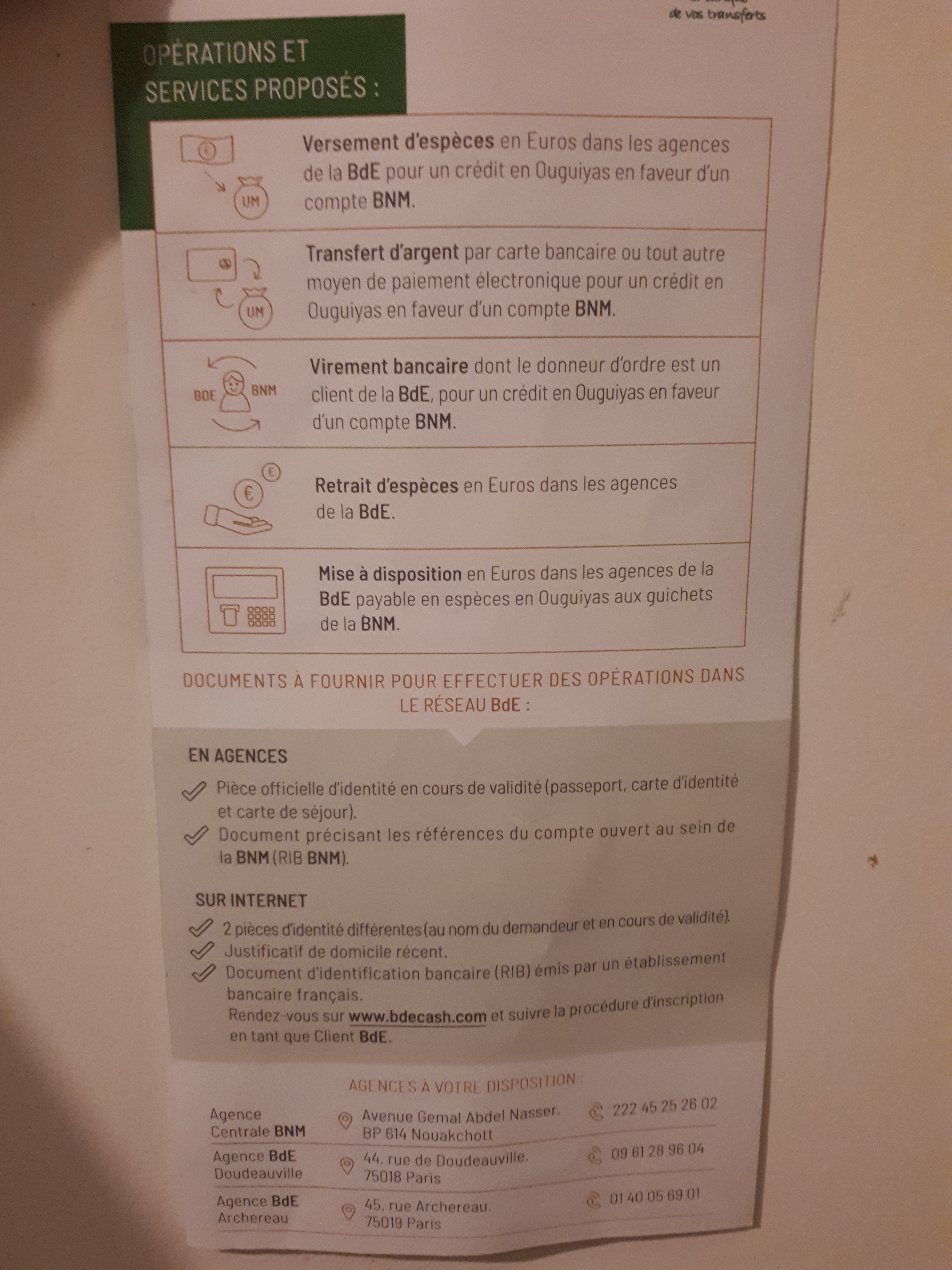 Dépliant explicatif du dispositif transfert d’argent BdE et compte BNM