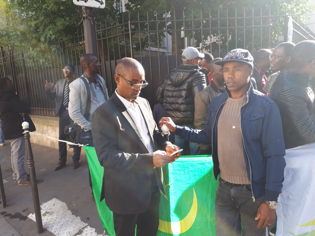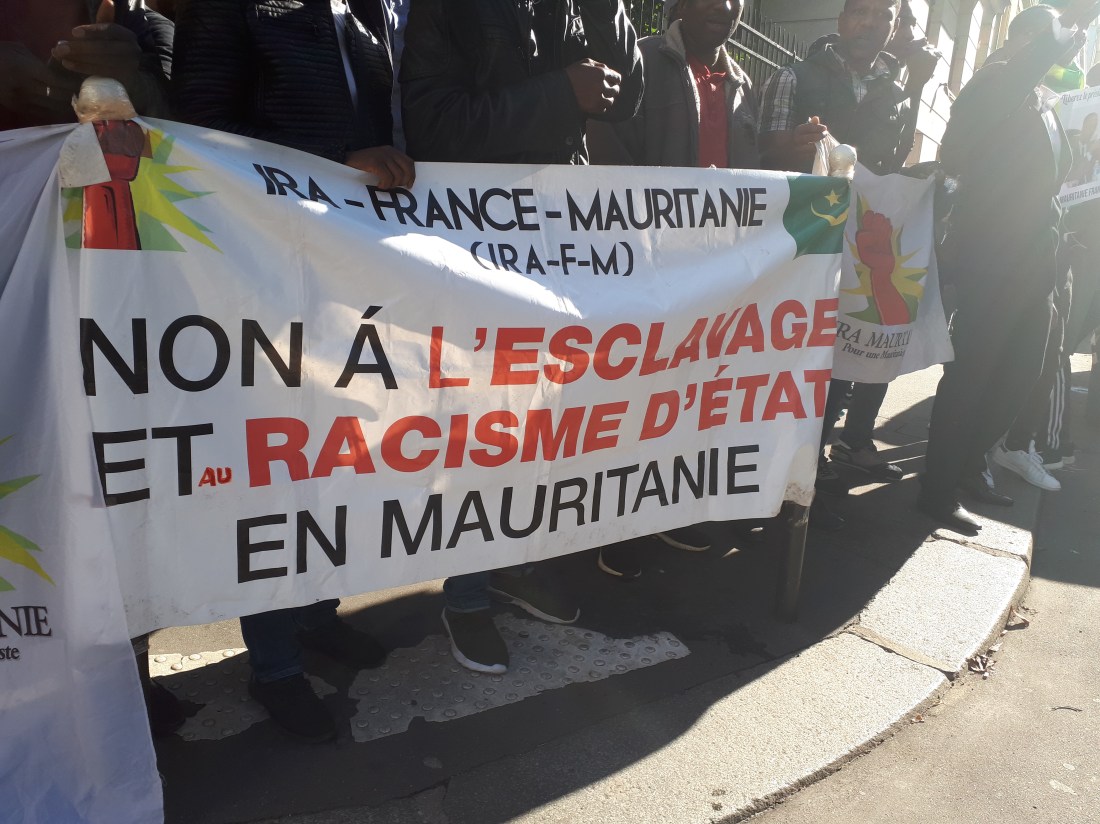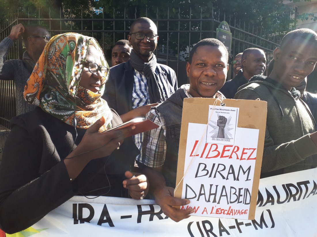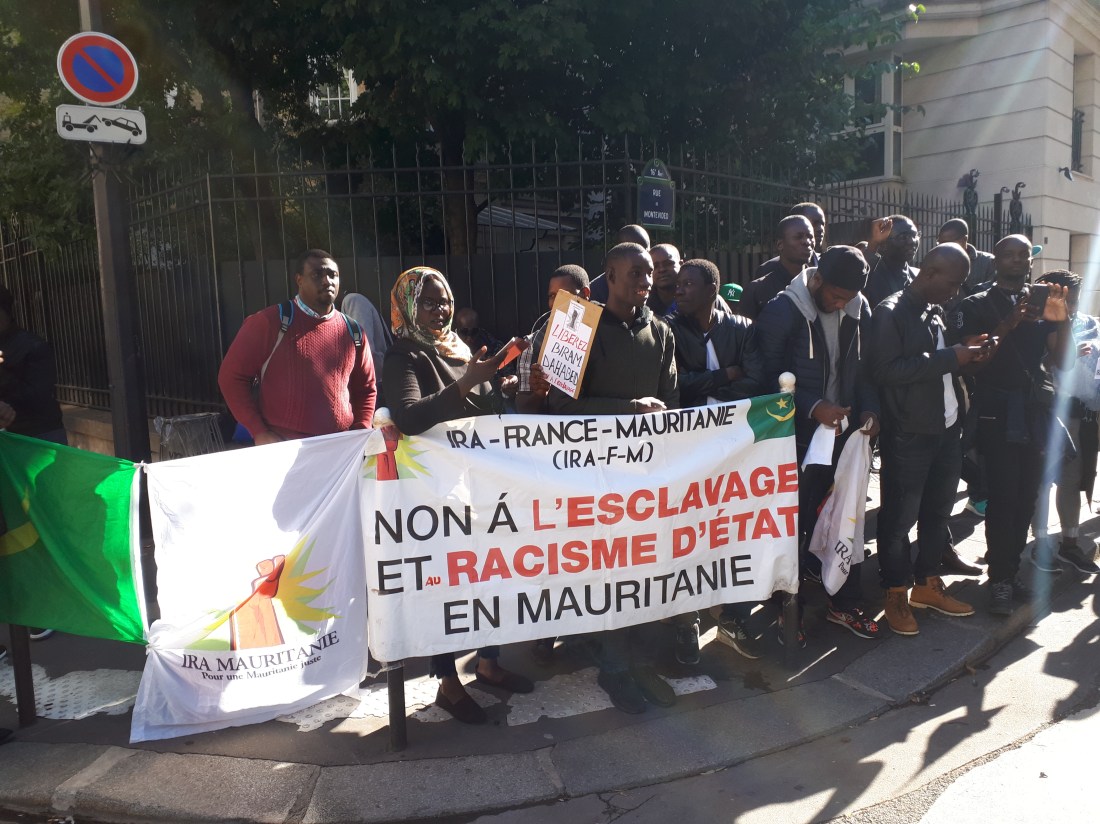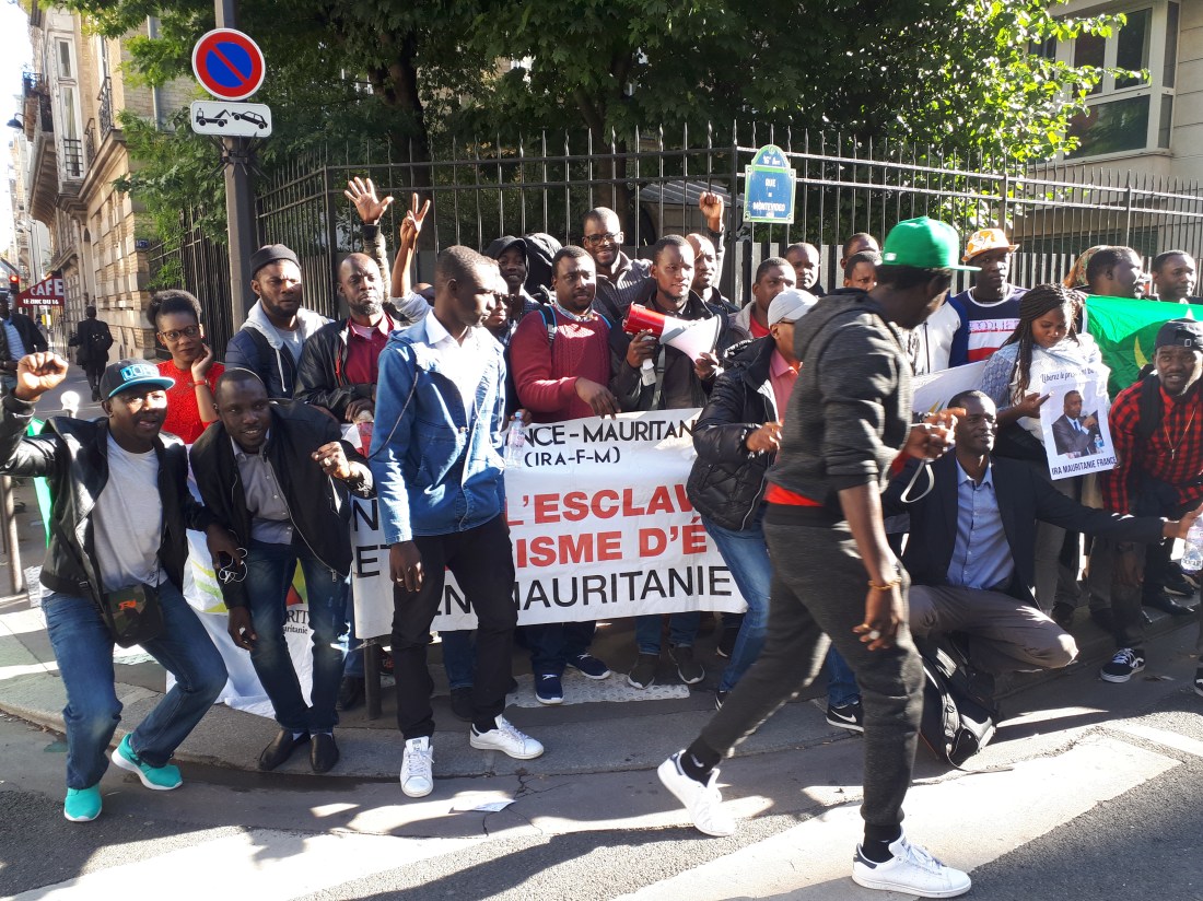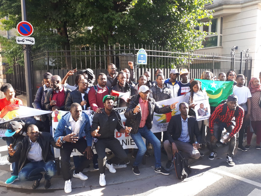 Des militants et sympathisants du mouvement abolitionniste IRA ont tenu un sit-in de soutien près de l’ambassade de Mauritanie à Paris dans le 16ème arrondissement. Menés par une antenne de IRA-France, les manifestants ont scandé des slogans dénonçant l’acharnement judiciaire que subit le leader abolitionniste incarcéré depuis le 7 Août dernier. Élu député lors des élections législatives du 1 et 15 septembre, Monsieur Biram Dah Abeid est à la tête d’une organisation antiesclavagiste fondée en 2008 mais toujours non reconnue par les autorités de Nouakchott. Ainsi ce jour, selon les cadres IRA-France, le but est de lancer un énième cri d’alerte aux autorités mauritaniennes et françaises sur le sort de leur leader qui croupit en prison pour des motifs douteux et inadmissibles .