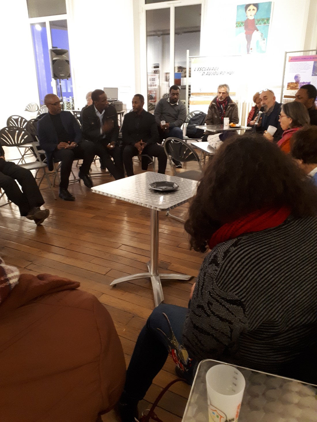 Après le cocktail, l’assemblée c’est installée en cercle pour débattre sur les sujets ayant trait à la mobilisation de la mairie de Fontenay-sous-Bois pour cette cause, le mécanisme que l’esclavage subit en Mauritanie comme au Soudan ou ailleurs, l’attitude de la france et des Etats Africains, des institutions des droits de l’homme.