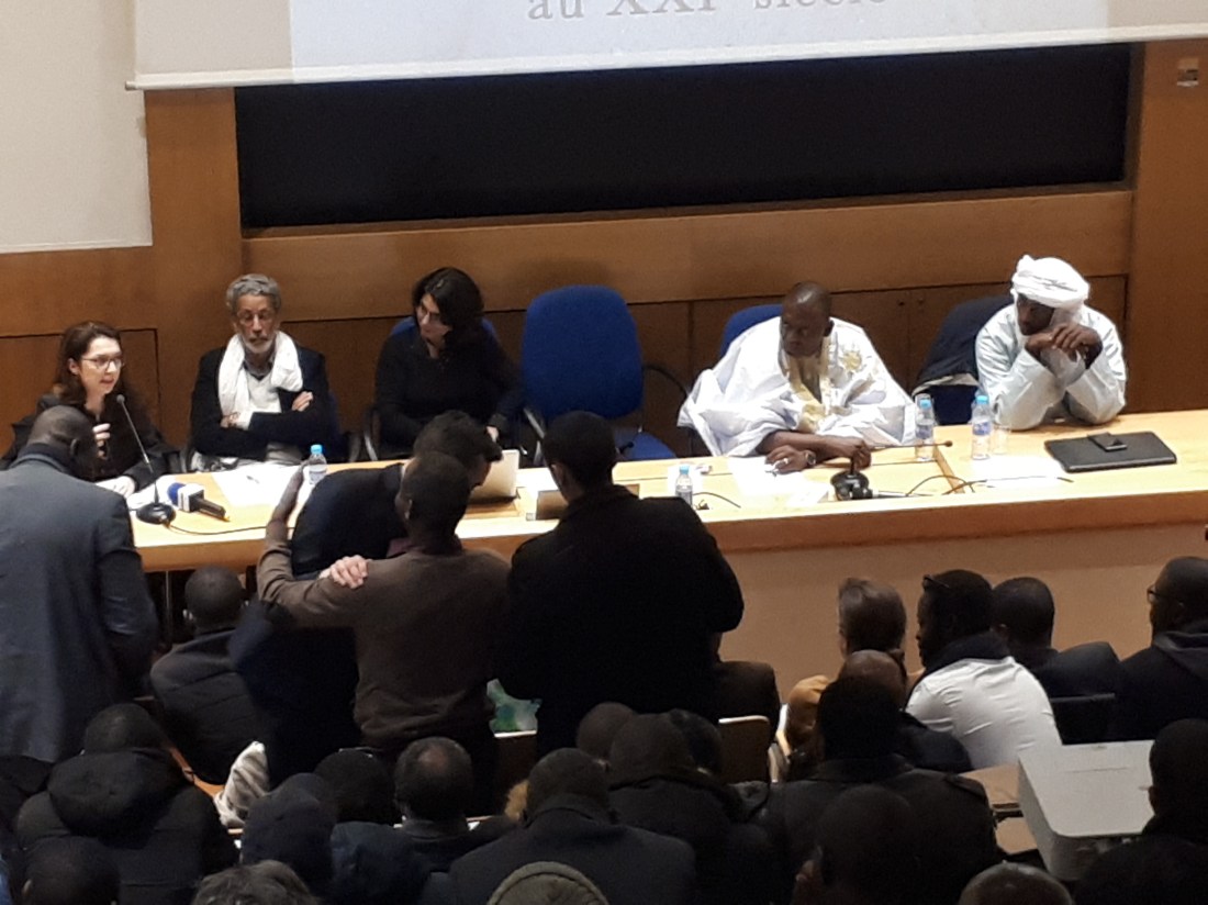 Ce Samedi 16 février 2019, s’est tenue une table ronde sur l’abolitionnisme africain au 21ème siècle avec comme principaux intervenants, 2 activistes abolitionnistes connus, le président du mouvement IRA-Mauritanie Mr Biram Dah Abeid (député mauritanien) et Mr Ali Bouzou du Niger, secrétaire général de l’ONG Timidria et secrétaire exécutif du Réseau ouest-africain de lutte contre l’esclavage. Dirigée par Mme Catarina Madeira-Santos, EHESS (l’École des Hautes Études en Sciences Sociales), la rencontre tenue au sein de l’Amphithéâtre François Furet a eu un franc succès par la teneur des interventions et l’affluence du public. Dans sa communication, Mr Ali Bouzou a pointé le déni et les contradictions émanant des pouvoirs publics dans son pays et d’autres de la sous-région autour des problématiques liées à l’esclavage. Par la suite le leader abolitionniste mauritanien Biram Dah Abeid, récemment fait Docteur honoris causa par l’UC Louvain en Belgique, a rappelé le difficile cheminement du combat abolitionniste qu’il mène depuis une décennie avec son organisation IRA-MAURITANIE (Toujours non reconnue par les autorités de Nouakchott). Le leader abolitionniste élu député au parlement mauritanien en septembre dernier, indexe un certain système de valeurs tenu par des segments esclavagistes eux-mêmes soutenus par le pouvoir étatique en place. Il appelle à un esprit de rebelle contre une légitimation de l’esclavage comme mode de vie sous le référent tronqué du religieux . Le Prix Onusien 2013 pour son engagement pacifique pour les Droits Humains et candidat déclaré à l’élection présidentielle 2019 en Mauritanie, pense que l’engagement politique est un des outils menant à un abolitionnisme efficient à terme. Cet angle de vue de la voie politique dans l’engagement abolitionniste est aussi encouragé par le responsable Nigérien de TIMIDRIA.