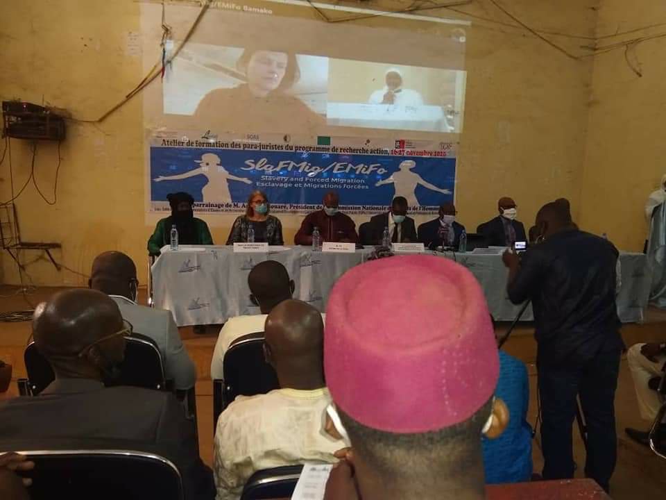 Lancement ce matin lundi 16 novembre 2020 de notre formation de para-juristes sur les droits humains, l’esclavage par ascendance et l’esclavage contemporain, sous la présidence du Ministre de l’enseignenent supérieur et de la recherche scientifique, Pr Amadou KEITA, à la Faculté de droit public de Bamako.