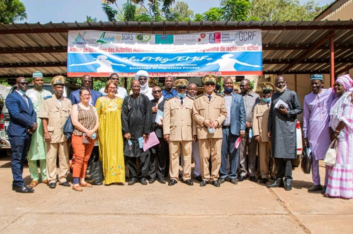 Dans le cadre du programme de Recherche – Action EMiFo (« Esclavage et Migrations Forcées dans l’Ouest du Mali ») s’est tenu un atelier de formation des autorités administratives et judiciaires principalement des régions de Kayes, Kita, Nioro et Koulikoro sur l’esclavage par ascendance du 28 juin au 2 juillet 2021. Le lundi 28 juin 2021 la cérémonie d’ouverture a regroupé une centaine de personnes dont les invités et les participants, gouverneurs, préfets magistrats etc. dans l’amphi 1 de la Faculté de Droit Public de Bamako.