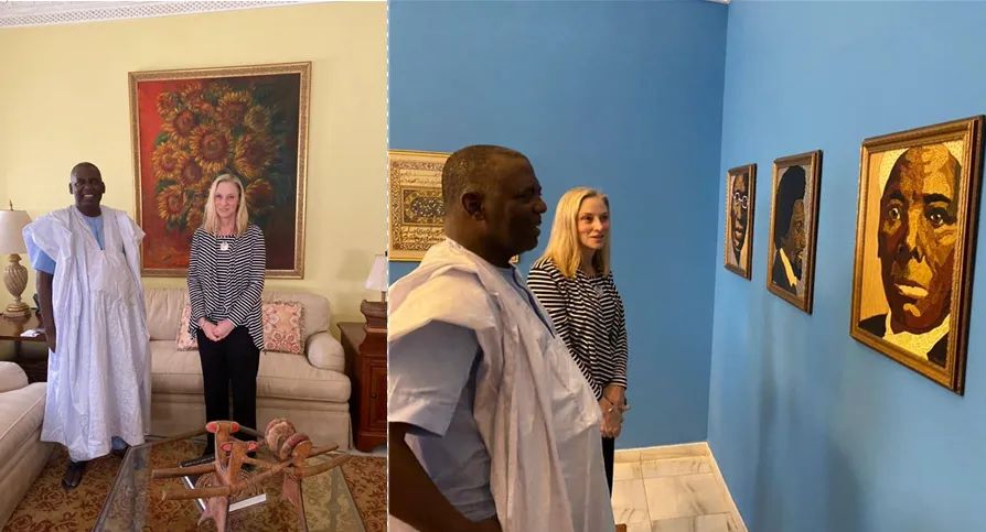 « التقت السفيرة كيرشت مع النائب البرلماني ورئيس حركة إيرا السيد برام الداه عبيد لمناقشة آخر التطورات السياسية والاجتماعية في موريتانيا. وركز الاجتماع على مناقشة أفضل السبل لتعزيز حقوق الإنسان ومحاربة العبودية وتحسين الاندماج السياسي في موريتانيا والمنطقة. وإدراكًا منها بأن النضال من أجل العدالة هو معركة عالمية، عرضت السفيرة على السيد برام مشاهدة بعض الأعمال الفنية التي تكرم الانعتاقيين المعروفين في الولايات المتحدة.