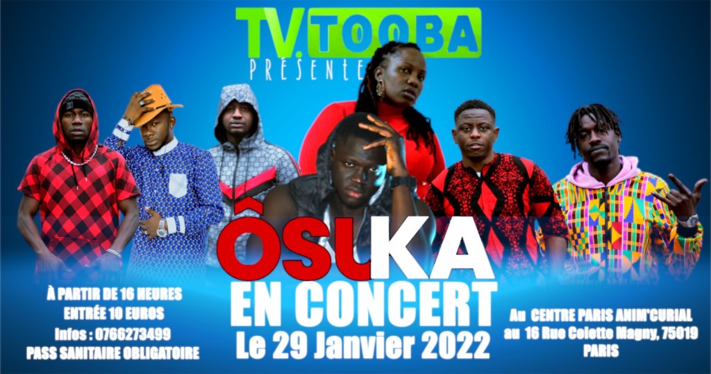 Nous sommes très heureux de vous annoncer un événement unique en collaboration avec les artistes de OSUKA LABEL pour le plus grand 𝗖𝗢𝗡𝗖𝗘𝗥𝗧 de musique urbaine soninké 𝗹𝗲 𝟮𝟵 𝗷𝗮𝗻𝘃𝗶𝗲𝗿 𝟮𝟬𝟮𝟮 au 𝗖𝗲𝗻𝘁𝗿𝗲 𝗣𝗮𝗿𝗶𝘀 𝗔𝗡𝗜𝗠’𝗖𝗨𝗥𝗜𝗔𝗟.