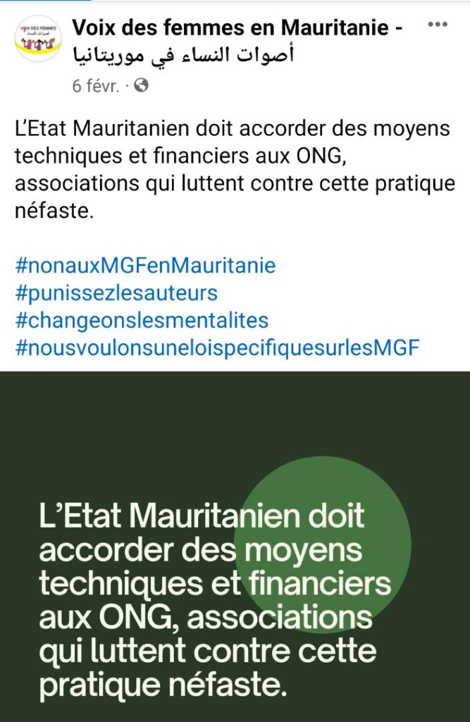 Sur le plan international, une journée est instituée depuis 2003 SEULEMENT, le 6 février de chaque année pour sensibiliser et alerter sur ces mutilations génitales féminines (MGF). À l’occasion de cette journée, mon présent billet a été inspiré par l’activisme de militant.e.s en Mauritanie à travers une Page Facebook appelée Voix des Femmes en Mauritanie https://www.facebook.com/Voix-des-femmes-en-Mauritanie-%D8%A3%D8%B5%D9%88%D8%A7%D8%AA-%D8%A7%D9%84%D9%86%D8%B3%D8%A7%D8%A1-%D9%81%D9%8A-%D9%85%D9%88%D8%B1%D9%8A%D8%AA%D8%A7%D9%86%D9%8A%D8%A7-100578671694078/ .