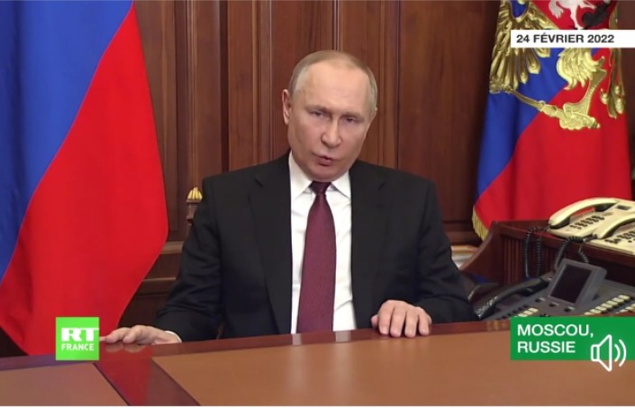 Jeudi 24 février 2022, le président Russe Vladimir Poutine annonce dans une intervention expresse TV, une intervention militaire contre l’Ukraine. L’homme fort du Kremlin au pouvoir depuis plusieurs années, motive cette action militaire publiquement pour porter secours aux républiques séparatistes du Donbass (reconnues par Moscou ces derniers jours) face au pouvoir Ukrainien. Cet événement du jour plus ou moins surprenant a suscité diverses réactions vives de condamnation à travers le monde notamment dans le camp occidental. À décortiquer attentivement le discours du dirigeant russe, on y comprend clairement que cette opération militaire qualifiée de « spéciale » selon ses termes, vise à reconquérir et protéger la sphère d’influence géostratégique et militaire face aux poussées intrusives de l’OTAN (Organisation du Traité de l’Atlantique Nord) sous l’égide Étasunienne. Ainsi l’aventure est lancée d’une guerre aux contours imprévisibles au cœur de l’Europe en ce début de l’année 2022.