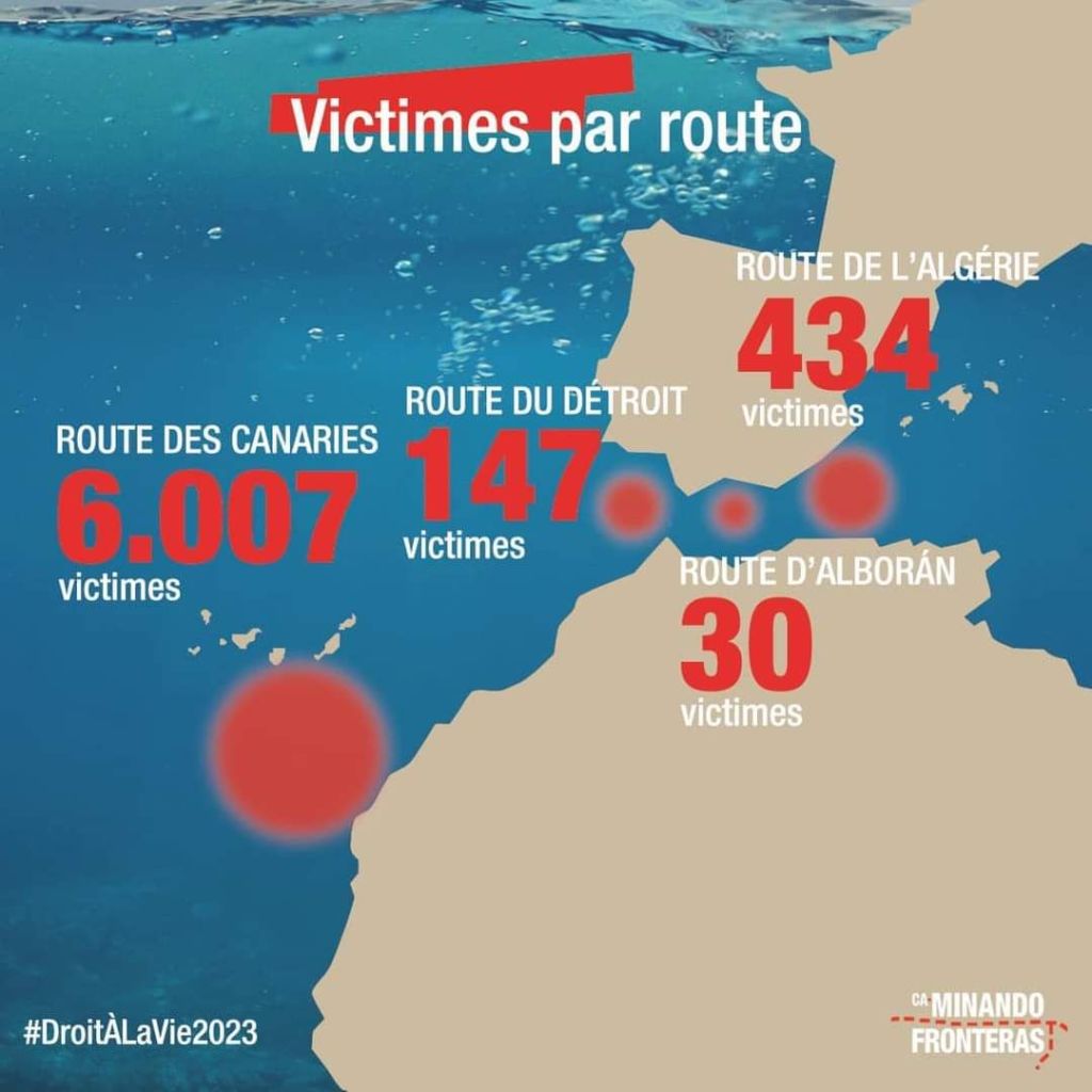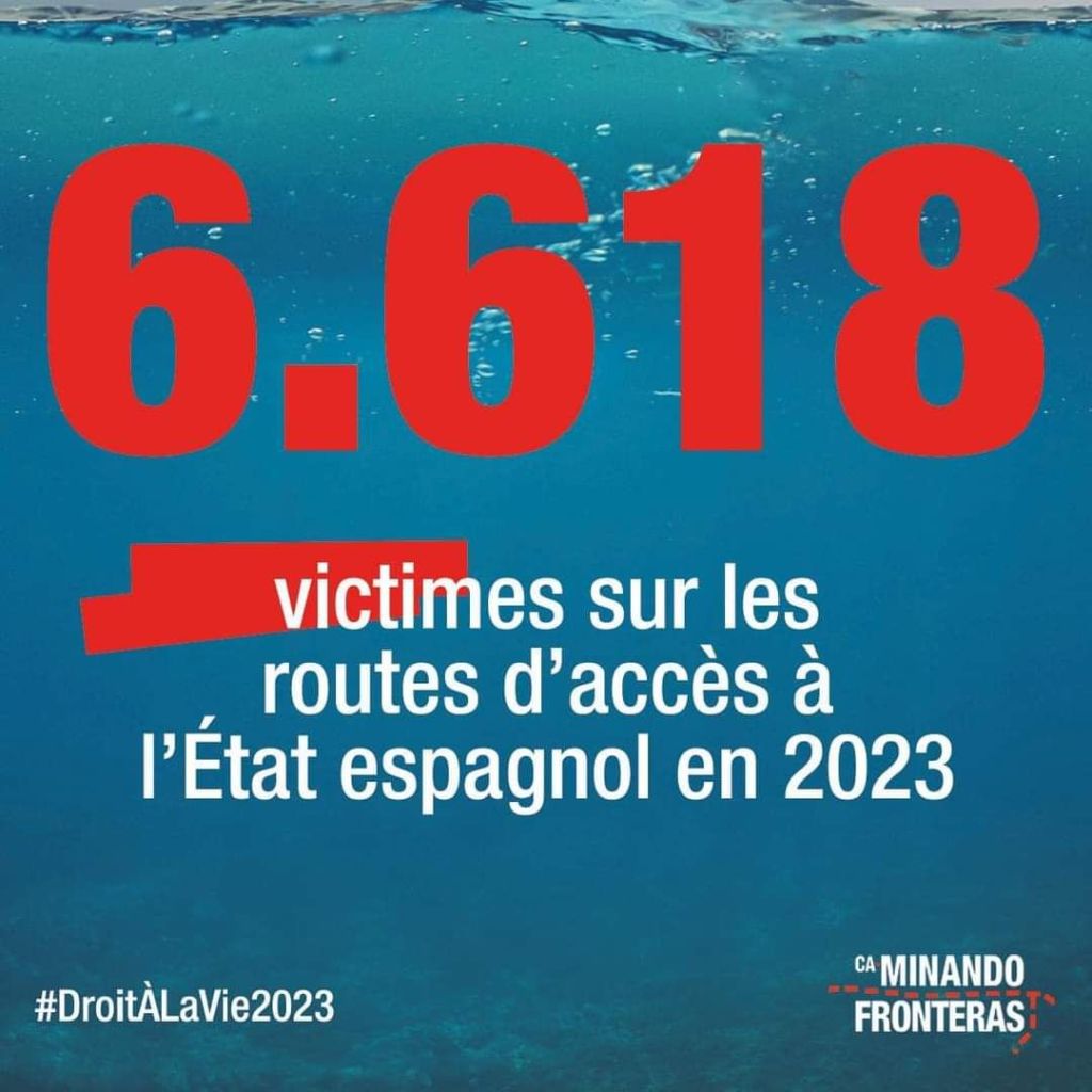 « 🚨 L’année 2023 a été l’année la plus meurtrière aux frontières espagnoles : 6618 personnes sont mortes en tentant de les franchir.