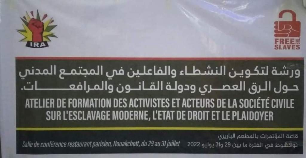 Quinze participants, issus de onze organisations de la société civile et des activistes prennent part depuis ce vendredi matin à Nouakchott et ce jusqu’au 31 juillet, à un atelier de formation des activistes et acteurs de la société civile sur l’esclavage moderne, l’Etat de droit et le plaidoyer. Cet atlier est organisépar IRA-Mauritanie, en partenariat avec Free the Slaves (FTS). Les quinze participants et le panel d’experts aborderont entre autres thèmes la situation mondiale de l’esclavage: (types d’esclavage moderne, causes de l’esclavage moderne), l’identification des exemples d’esclavage moderne en Mauritanie ainsi que les engagements juridiques de la Mauritanie. Au cours de cet atelier, il sera défini l’esclavage moderne en Mauritanie, ses causes et conséquences. Les conventions internationales et la législation nationale protégeant les groupes marginalisés ou vulnérables contre l’esclavage moderne seront abordées. Les participants vont connaitre le cadre juridique de l’engagement de la Mauritanie à lutter contre l’esclavage.