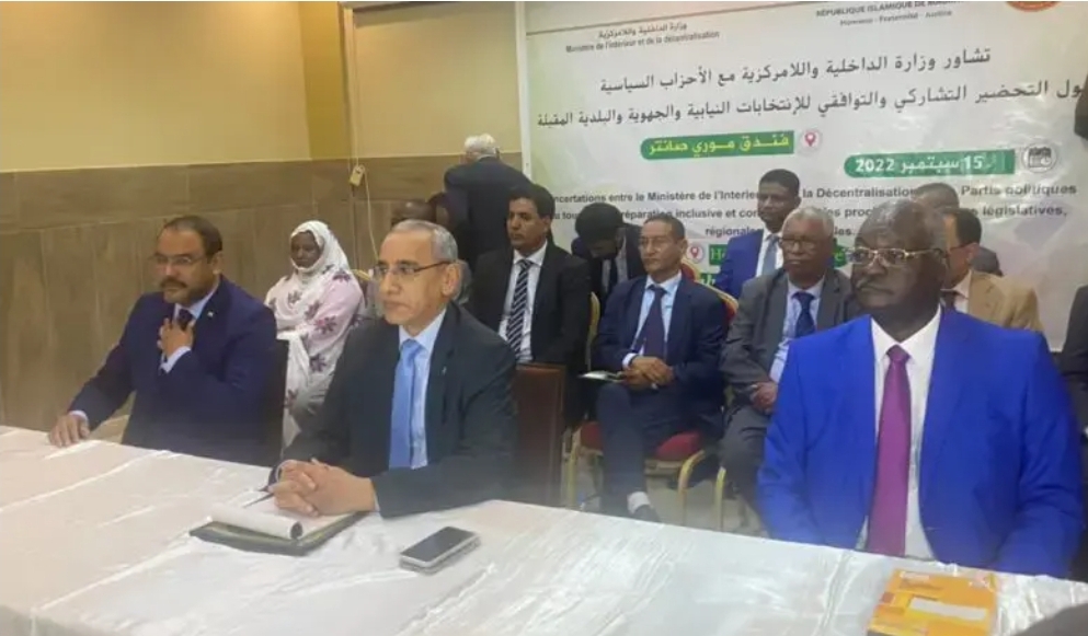 Le ministre mauritanien de l’intérieur et de la décentralisation, Mohamed Ahmed O. Mohamed Lemine a tenu ce jeudi une réunion à huis clos avec les présidents et les représentants de 24 partis politiques afin de discuter la préparation participative et consensuelle des prochaines élections législatives et régionales avec deux points essentiels à l’ordre du jour : l’anticipation des élections et le système de la proportionnelle.